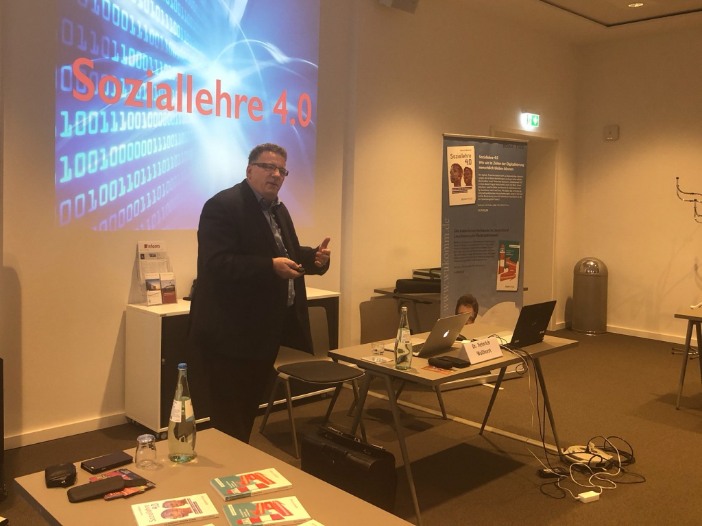 Heinrich Wullhorst weist auf die Herausforderungen hin, denen sich Politik, Kirche und Zivilgesellschaft bei der Bewältigung der digitalen Revolution stellen müssen. „Digitalisierung ist nämlich viel mehr als schnelles Internet oder Flugtaxis. Sie ist eine gesellschaftliche Zeitansage.“